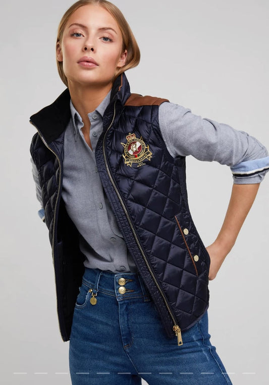 乗馬用ダウンベスト レディース 防水 ダークネイビー Mrs Ros Equestrian