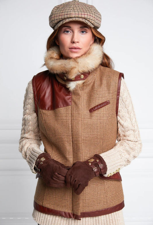 最高級天然ファー付きウールベスト レディース チェック柄 Holland Cooper