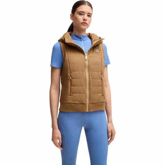 撥水軽量ダウンベスト フード付き ブラック/キャメル Boss