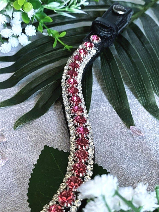【ラスト1点】スワロフスキーUシェイプ額革 ユニコーンピンク ハート ブラック Benz Equestrian