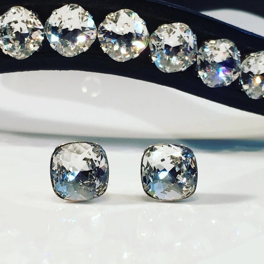 高級スワロフスキー額革&ピアスセット クリア PerlStoft ブラック/ダークブラウン