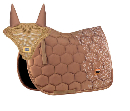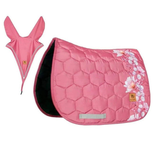 バラ柄サドルパッド&イヤーネット セット グラファイト/ライトベージュ 馬場用 障害用 ゼッケン
