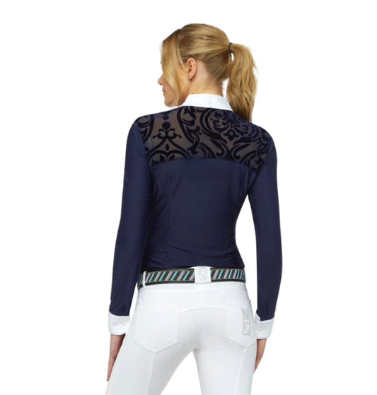 競技用シャツ 長袖 ベルベットシースルー花柄 レディース Emcee ネイビー