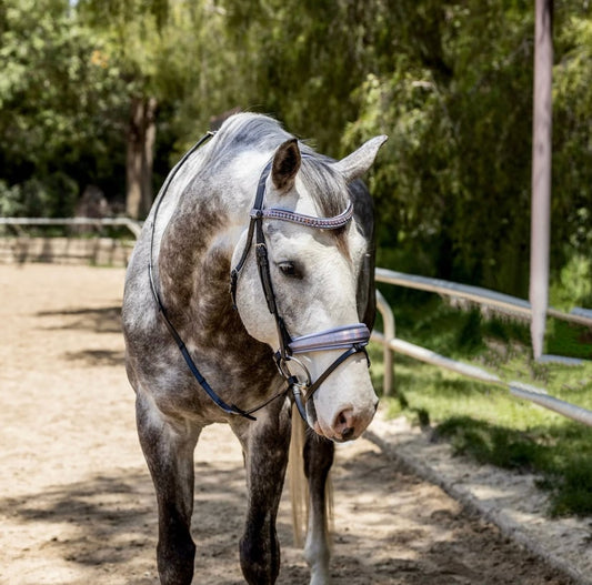 グレークロコ頭絡 パープルパイピング スワロフスキー額革&手綱付き Halter ego