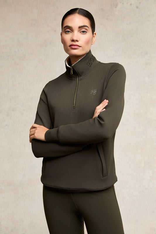 フロントジップスウェットトップス 襟ボア付き ネイビー/ダークオリーブ Holland Cooper