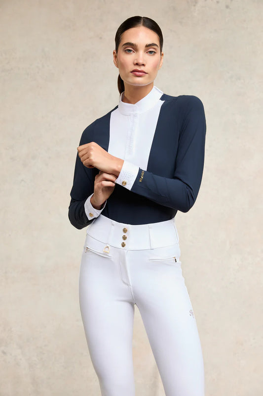 刺繍入りショーシャツ レディース ホワイト/ネイビー Holland Cooper
