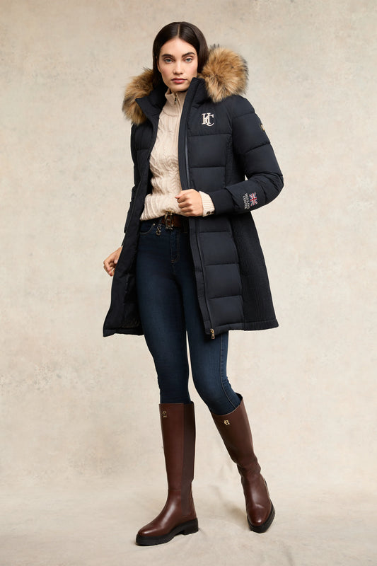 完全防水ロングダウンコート 取り外し可能フード付き ダークネイビー レディース Holland Cooper