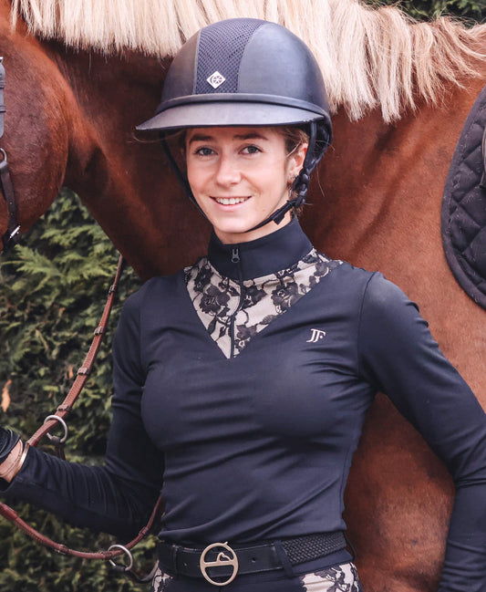 レース長袖トップス クイックドライ素材 レディース ブラック/トリュフ Jessica Fox