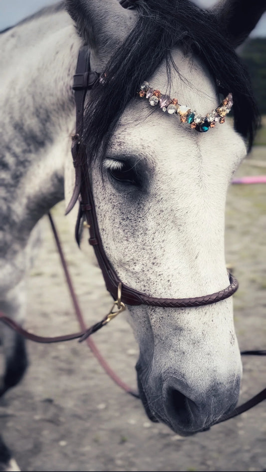 メガブリング額革 パール&マルチカラークリスタル Benz Equestrian