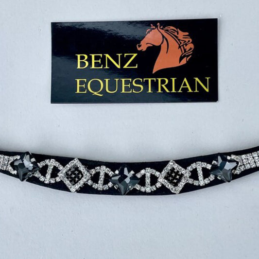 スクエアデザイン額革 ブラック&シルバースワロフスキー Benz Equestrian