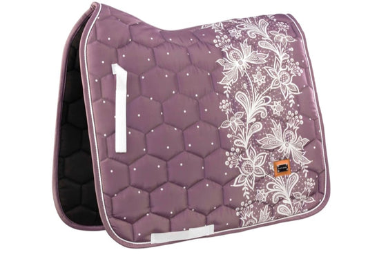 サテンフラワーサドルパッド&イヤーネットセット ライラック 馬場用 障害用 ゼッケン