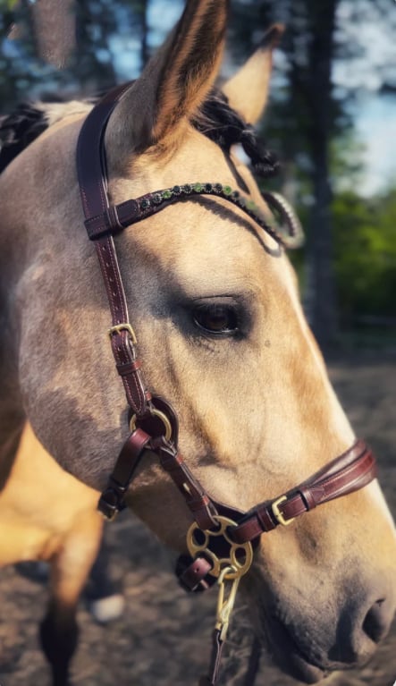 スワロフスキー額革 クイックシステム ピンクブラウン/ゴールド Mrs Ros Equestrian