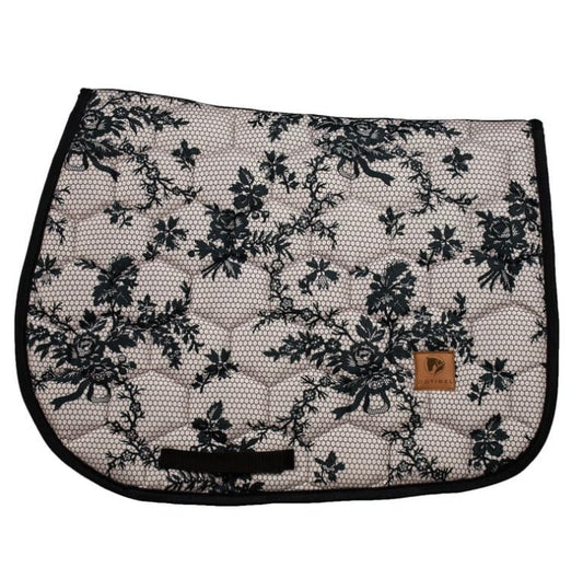 サテンレースサドルパッド ライトベージュ/ブラック 馬場用 障害用 ゼッケン