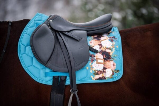 ローズ柄サドルパッド ターコイズ 馬場用 障害用 ゼッケン