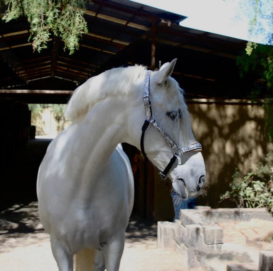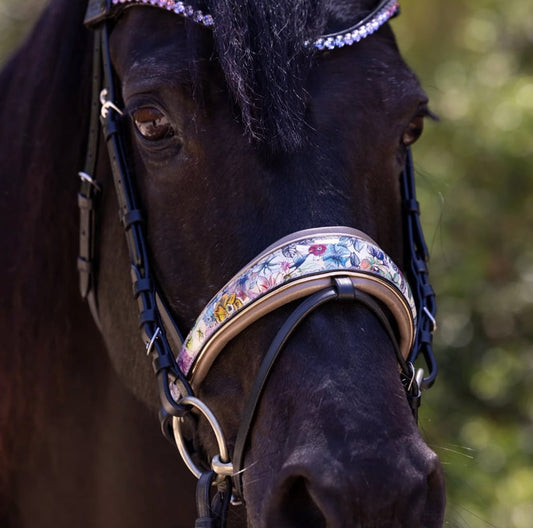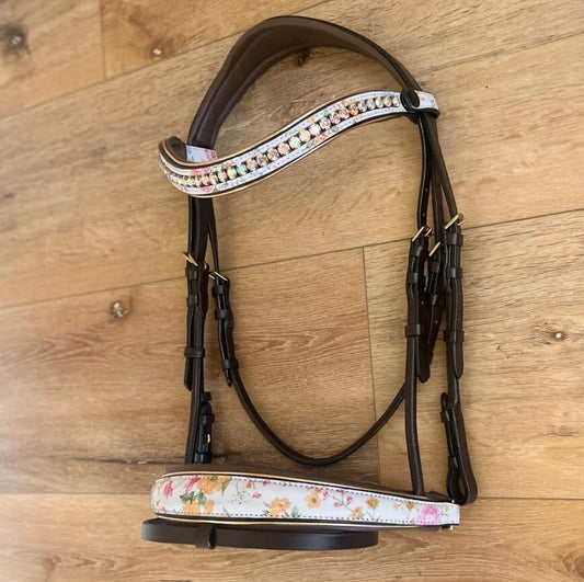 フローラルプリント頭絡 ドルチェブラウン スワロフスキー額革&手綱付き Halter ego