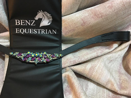 メガブリング額革 パープル&マルチカラークリスタル Benz Equestrian