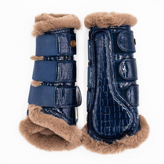 ミンクファー付きレザープロテクター 前後兼用 クロコ型押し 2本1組 ロイヤルエクウストリアン