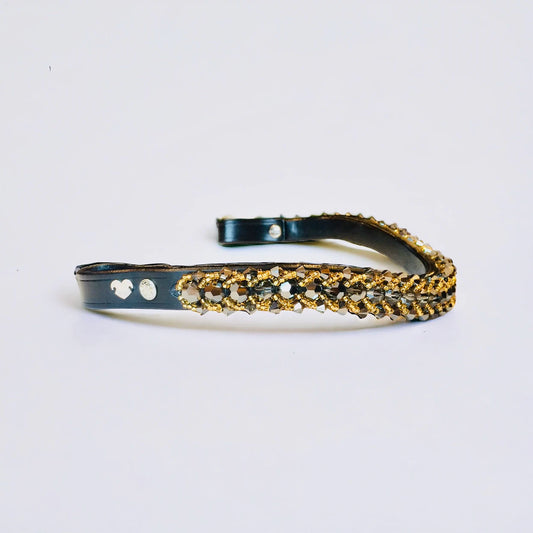 高級スワロフスキー額革 ゴールド PerlStoft ブラック/ダークブラウン