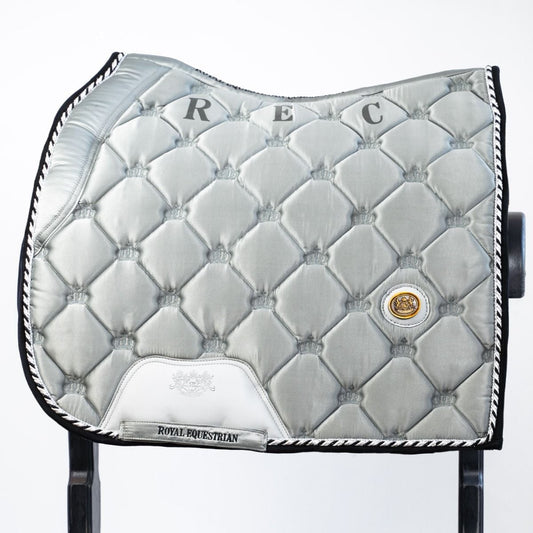 最高級シリコンキルティングゼッケン 馬場用 競技会ゼッケン Royal Equestrian サテンホワイト・ブラック