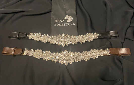 スワロフスキードロップ額革 6色展開 本革 Benz Equestrian