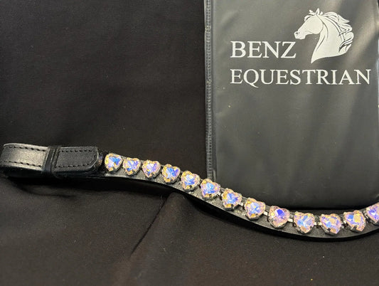 【ラスト1点】スワロフスキーUシェイプ額革 ユニコーンピンク ハート ブラック Benz Equestrian