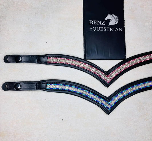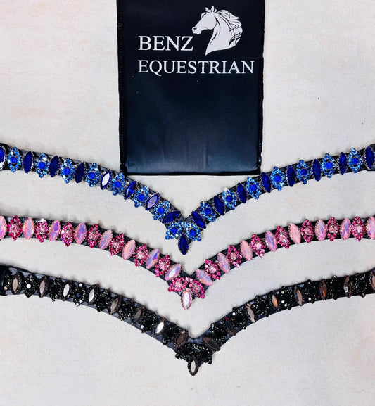 スワロフスキー額革 Vシェイプ サファイアブルー/フーシャピンク/ブラック Benz Equestrian