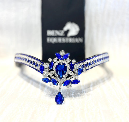 スワロフスキーメガブリング額革 サファイアブルー ブラック Benz Equestrian