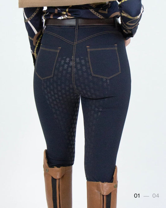 乗馬用レディースキュロット デニム素材 ハイウエスト フルグリップ ブルー Ps of Sweden
