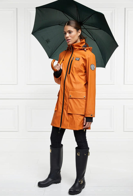 乗馬用レインコート ロング 100%防水 レディース マンダリンオレンジ・ブラック Holland Cooper