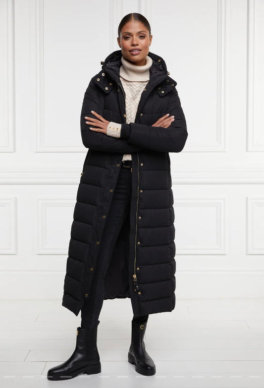 Holland Cooper Long Down Coat with Fur Hood for Women