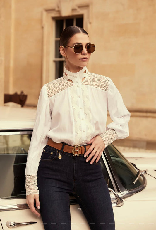 [Limited Edition] Holland Cooper Feather Lace Shirt for Women in White and Black