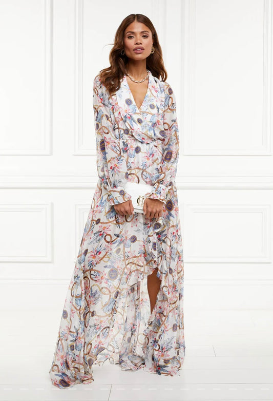 Pure Silk Ruffle Dress for Women, Holland Cooper, Pink/Green