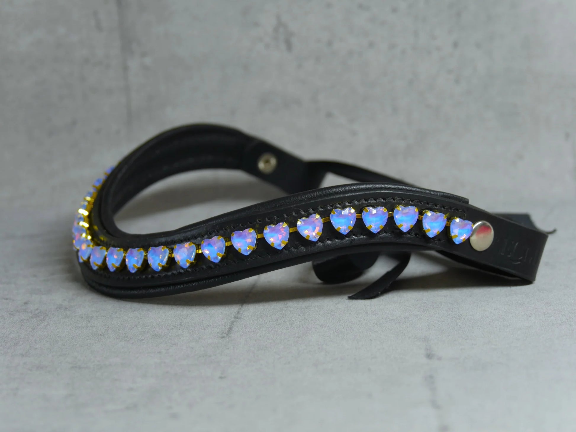 The supple and durable genuine leather is adorned with large clear Swarovski crystals.