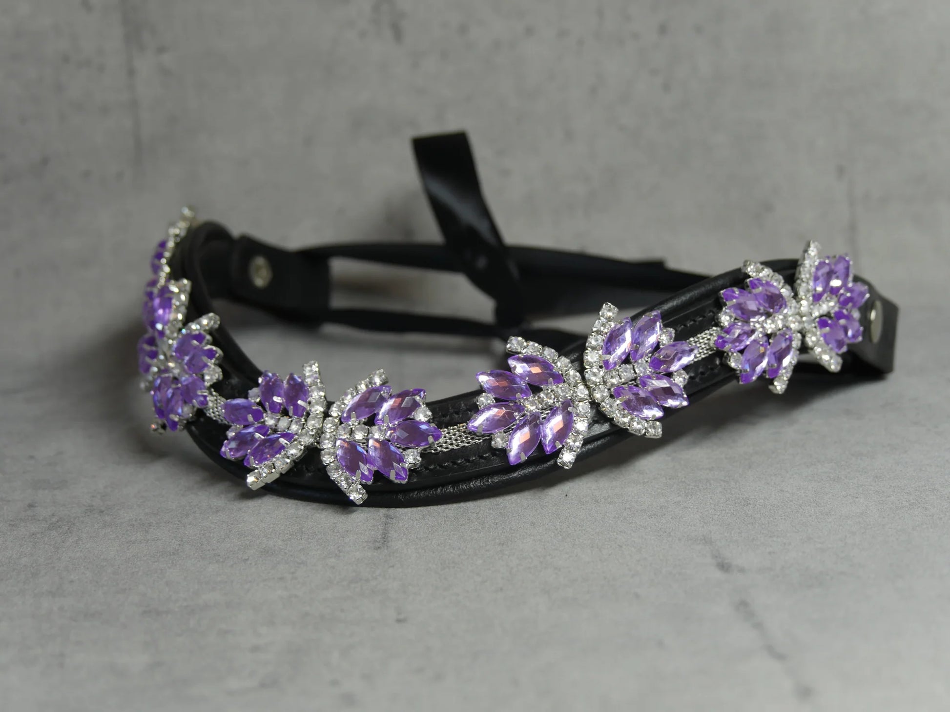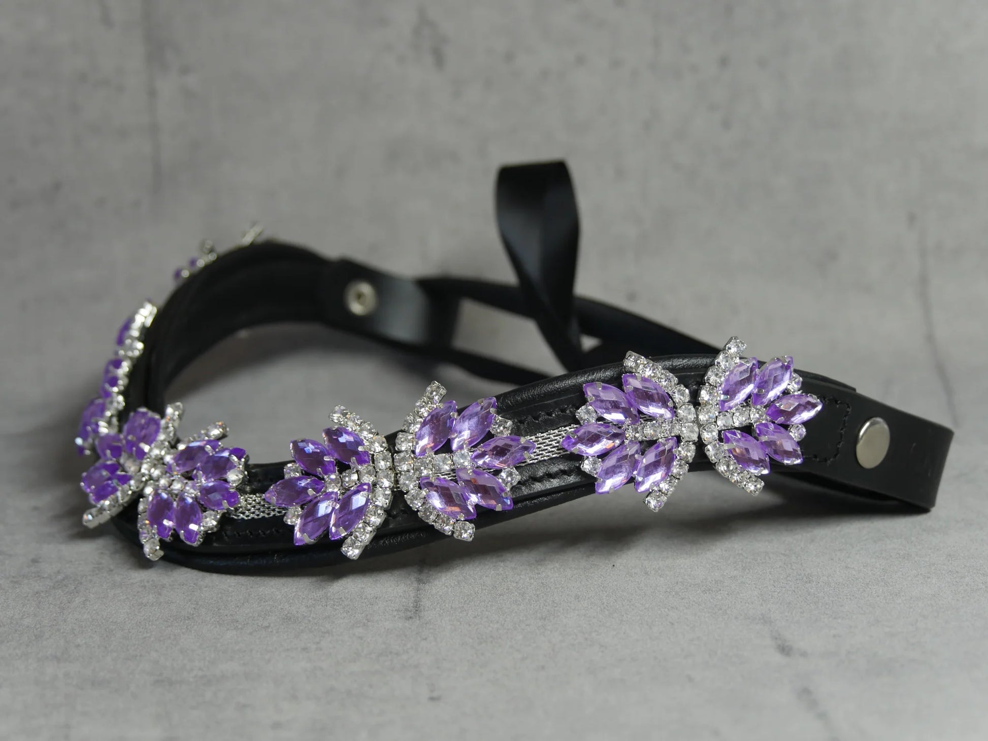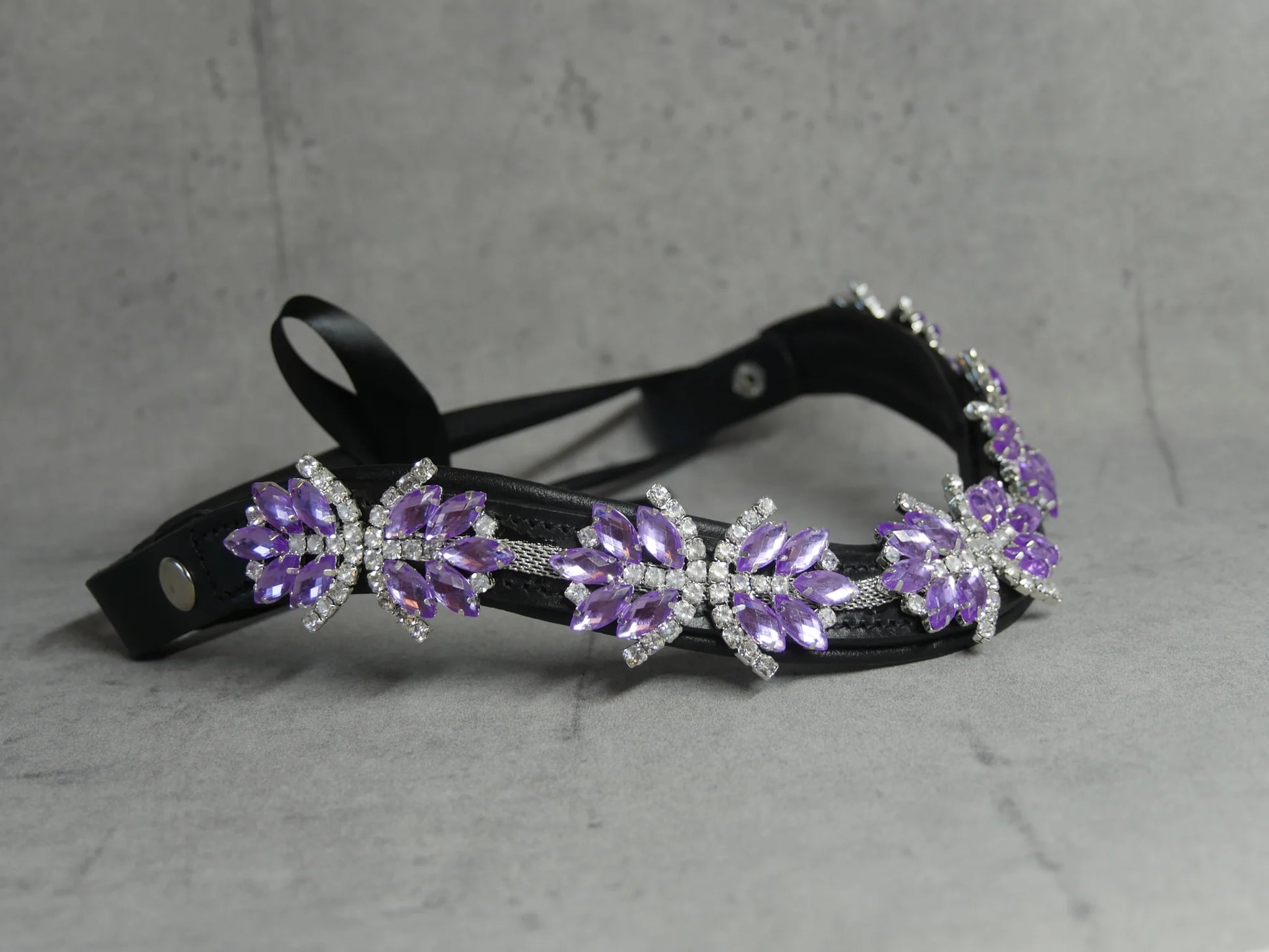 The supple and durable genuine leather is adorned with large clear Swarovski crystals.