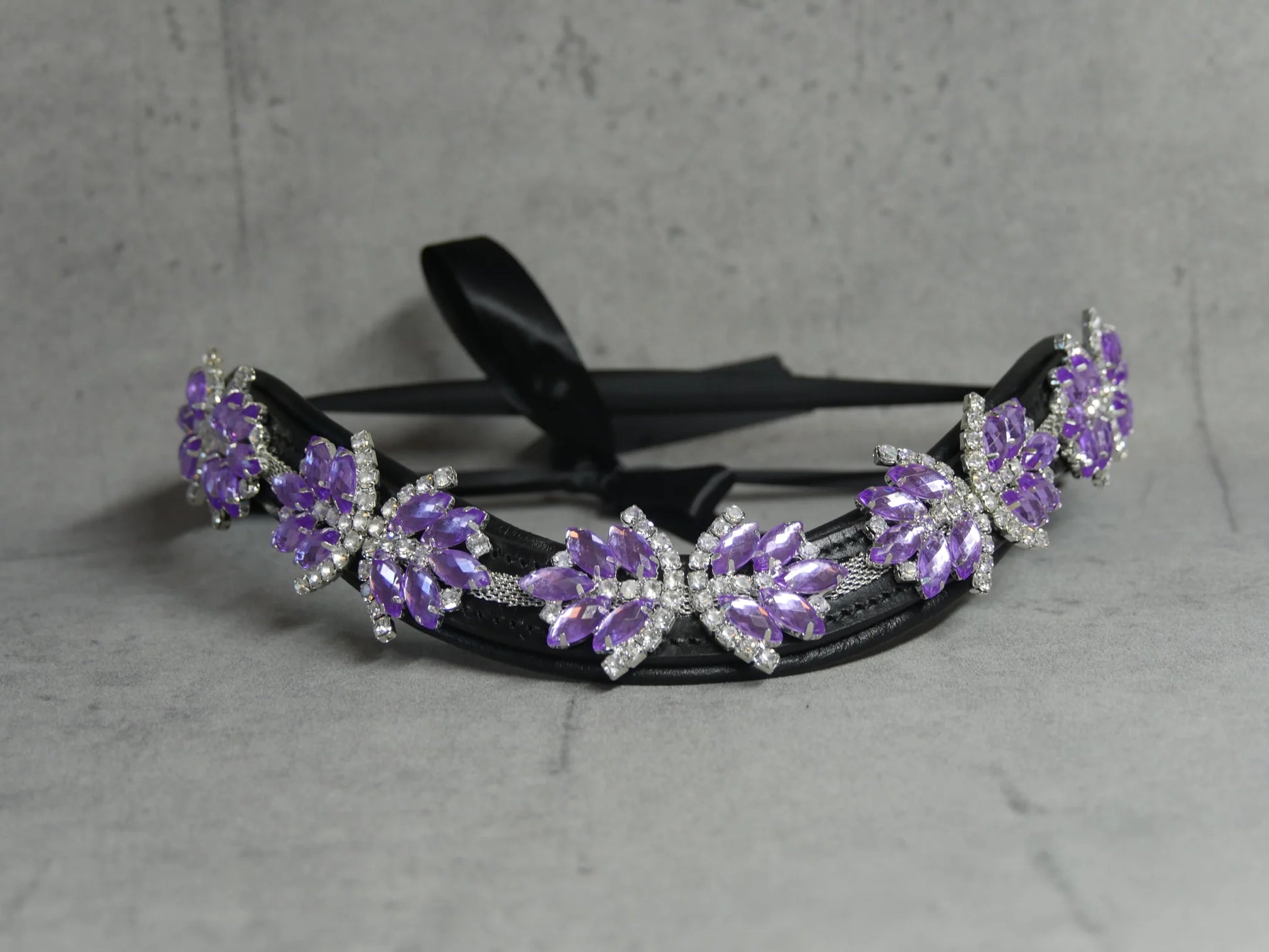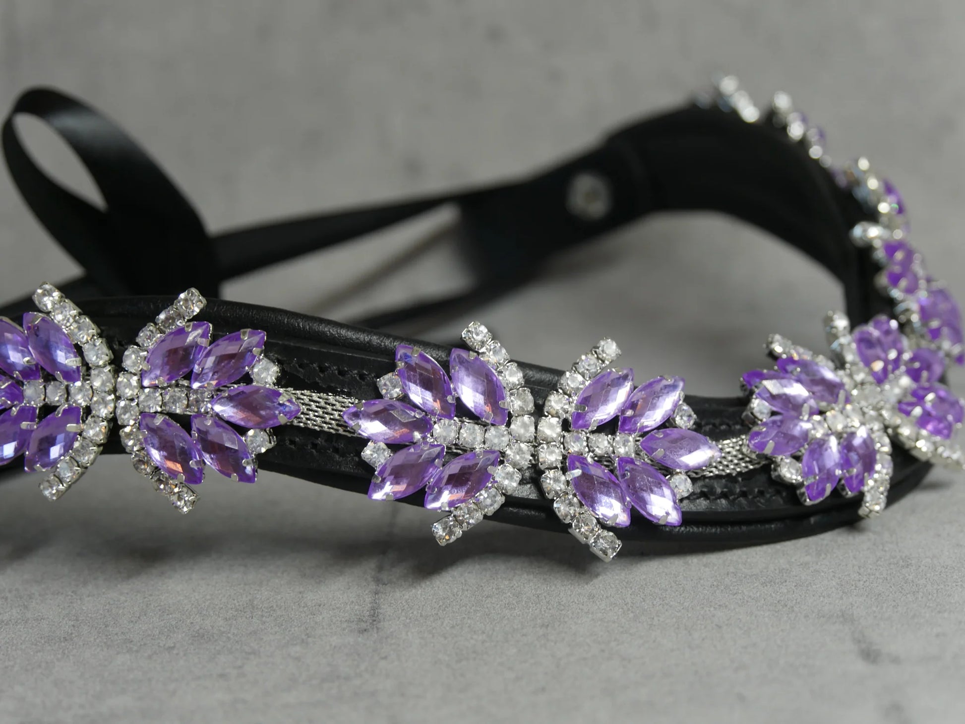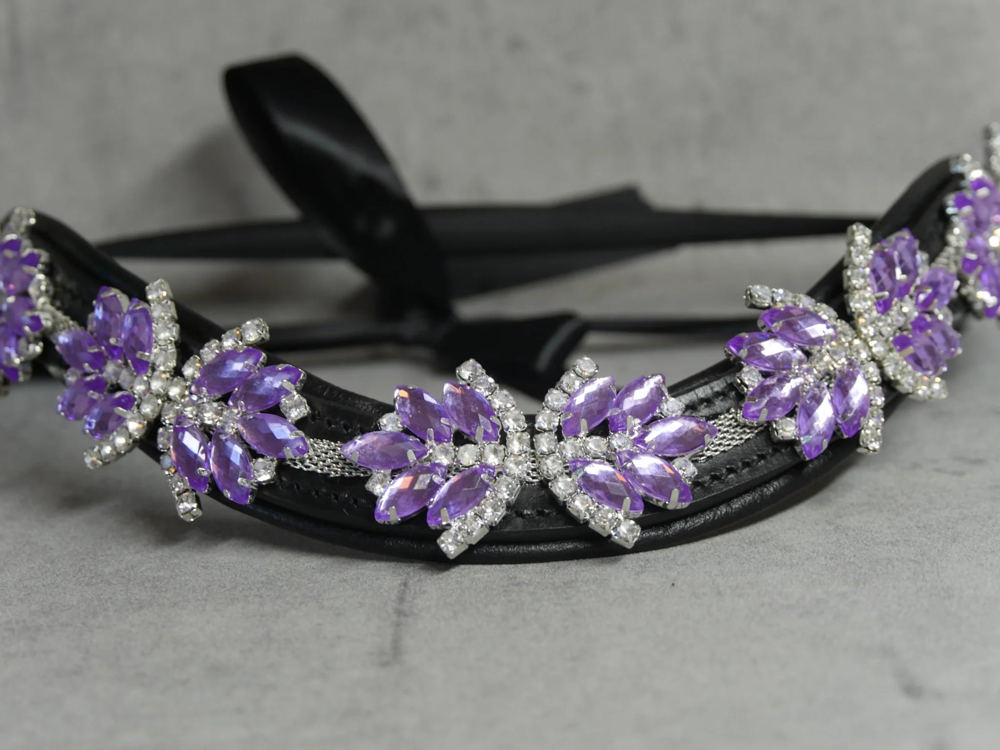 The supple and durable genuine leather is adorned with large clear Swarovski crystals.
