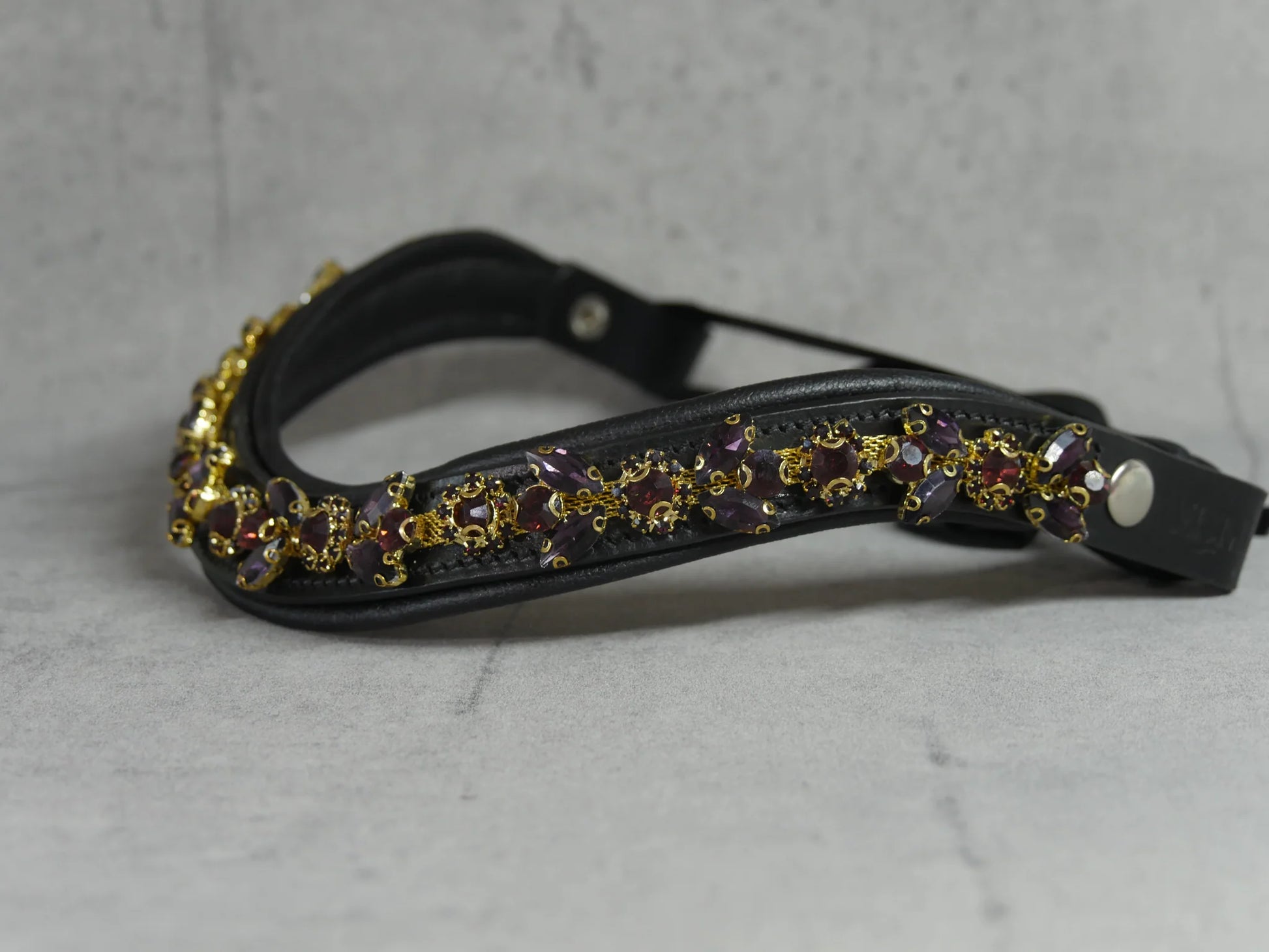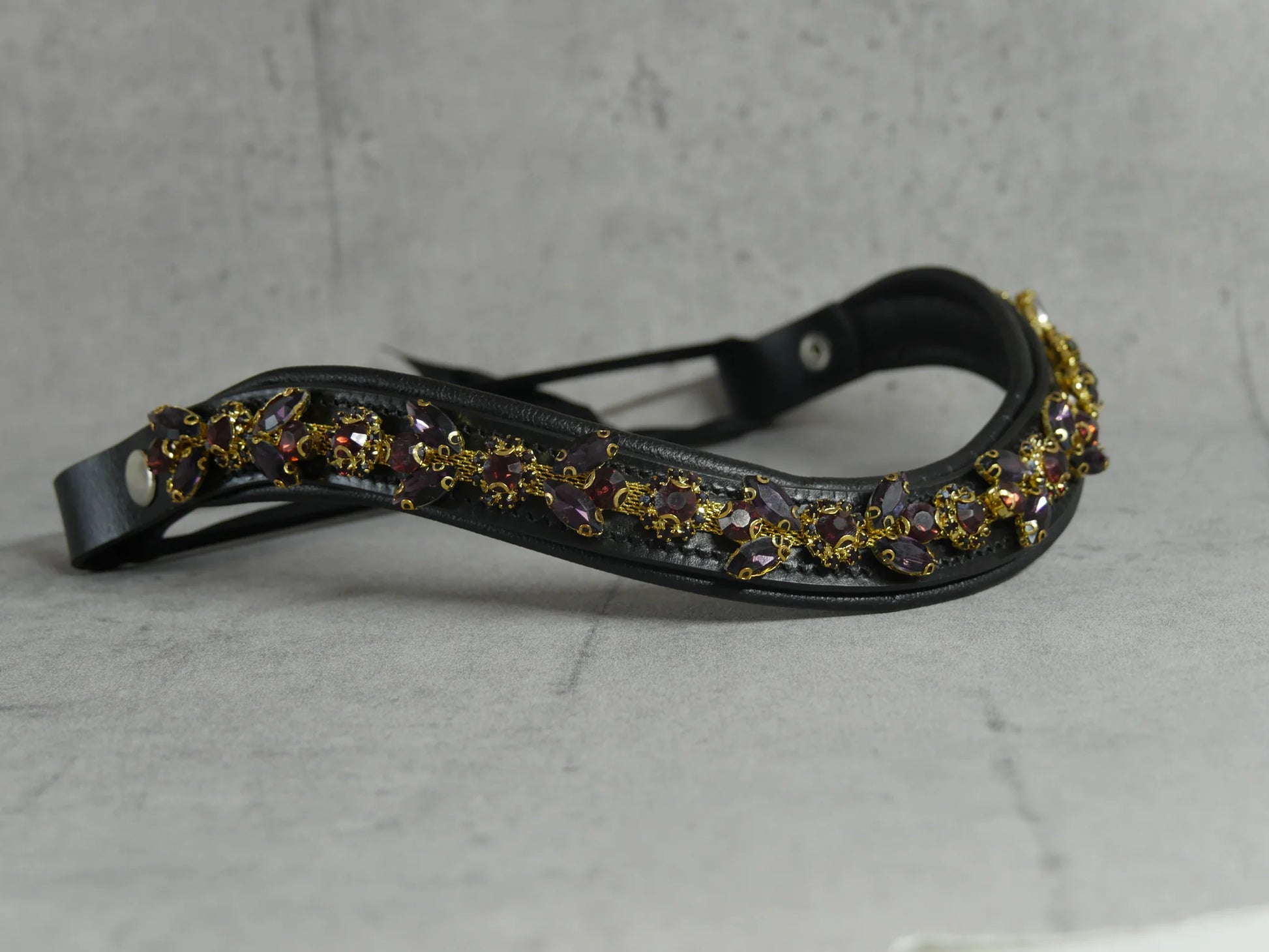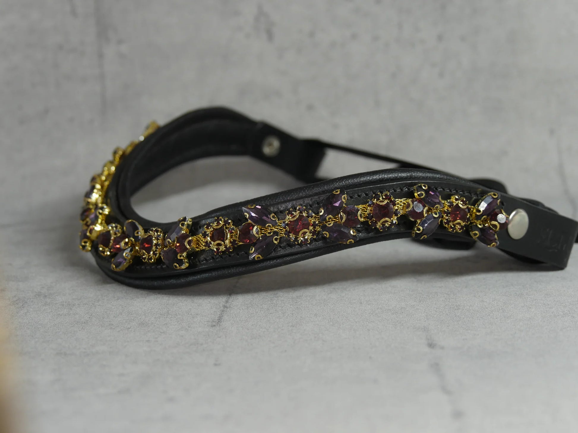The supple and durable genuine leather is adorned with large clear Swarovski crystals.