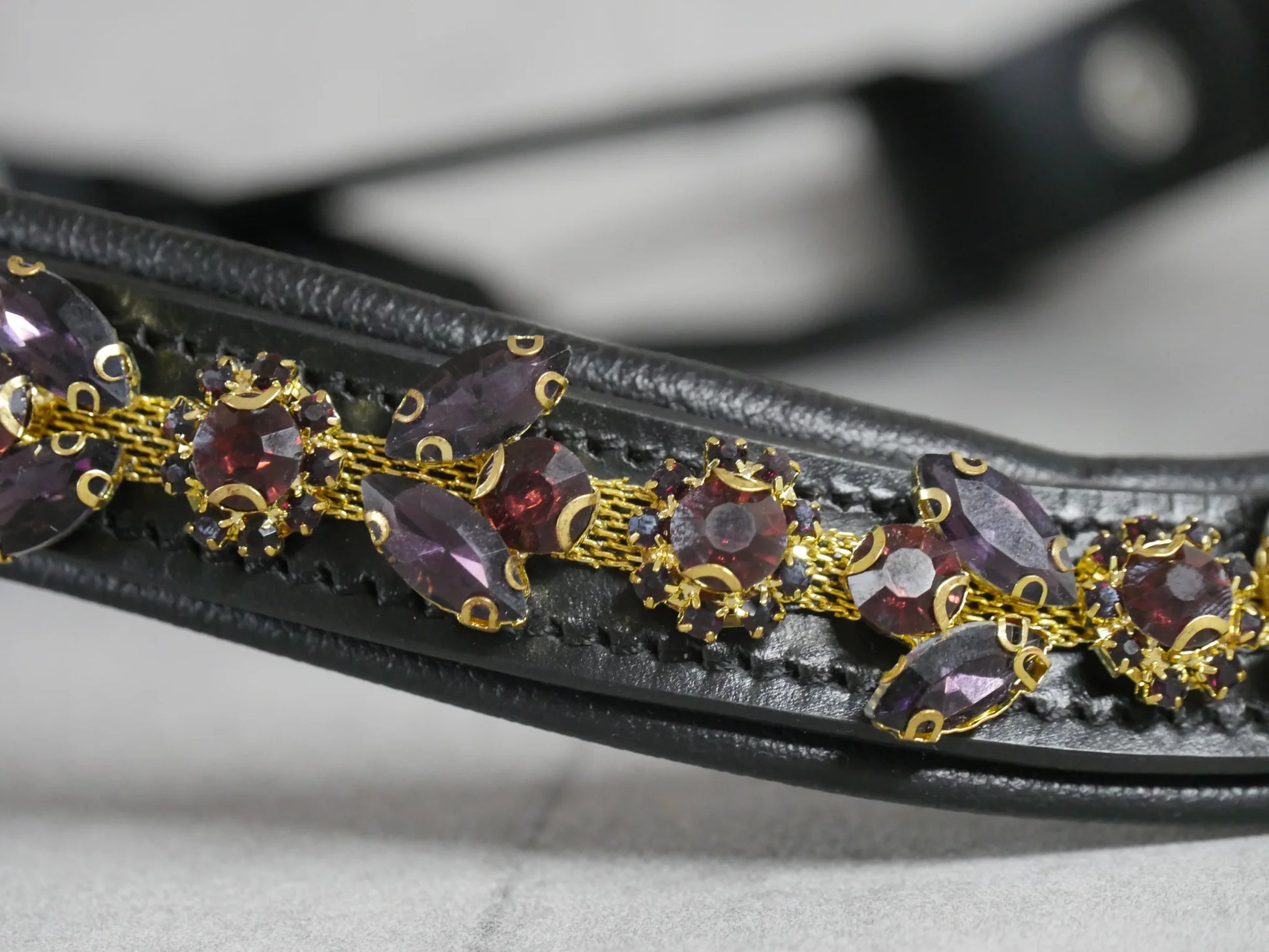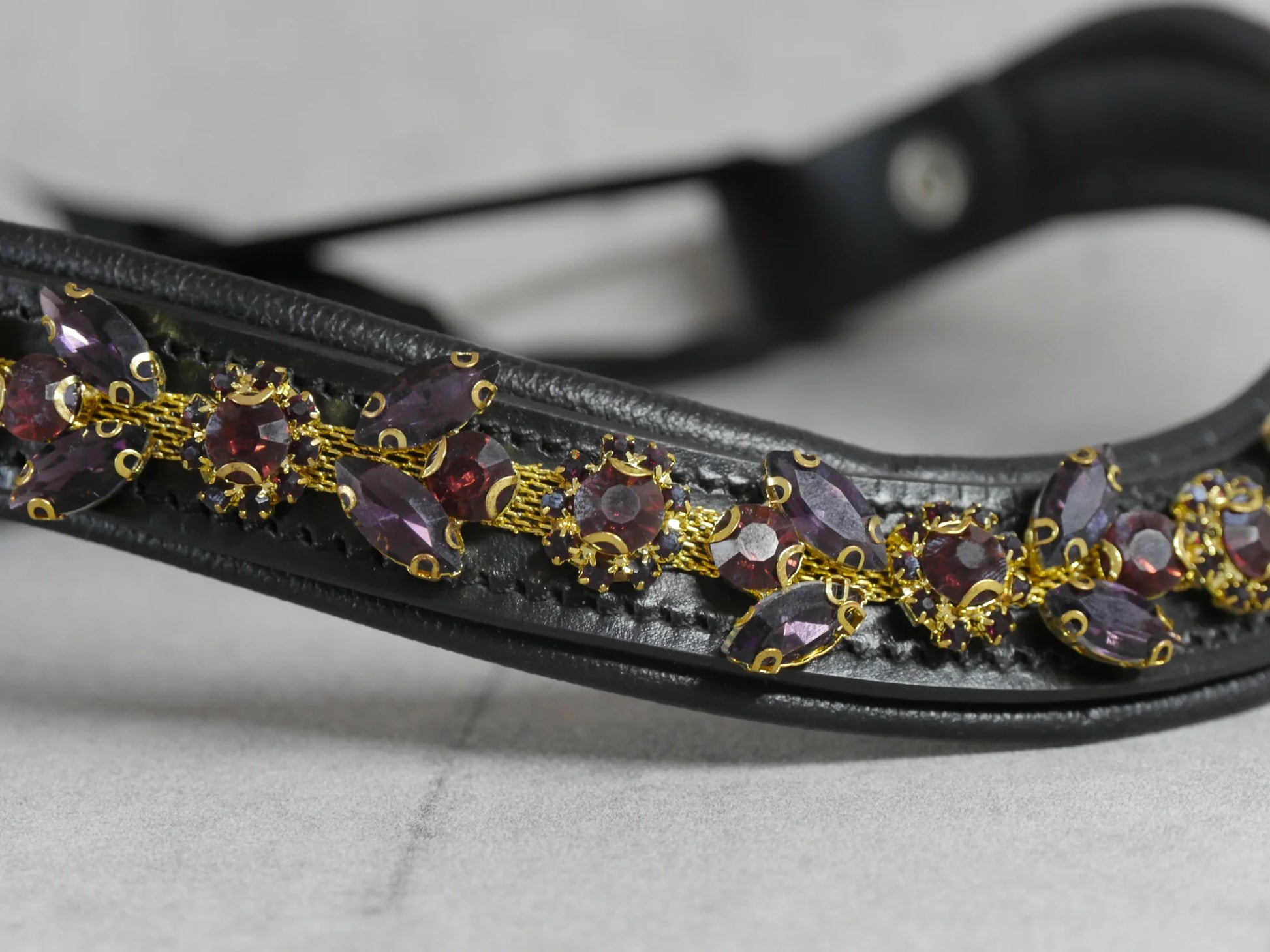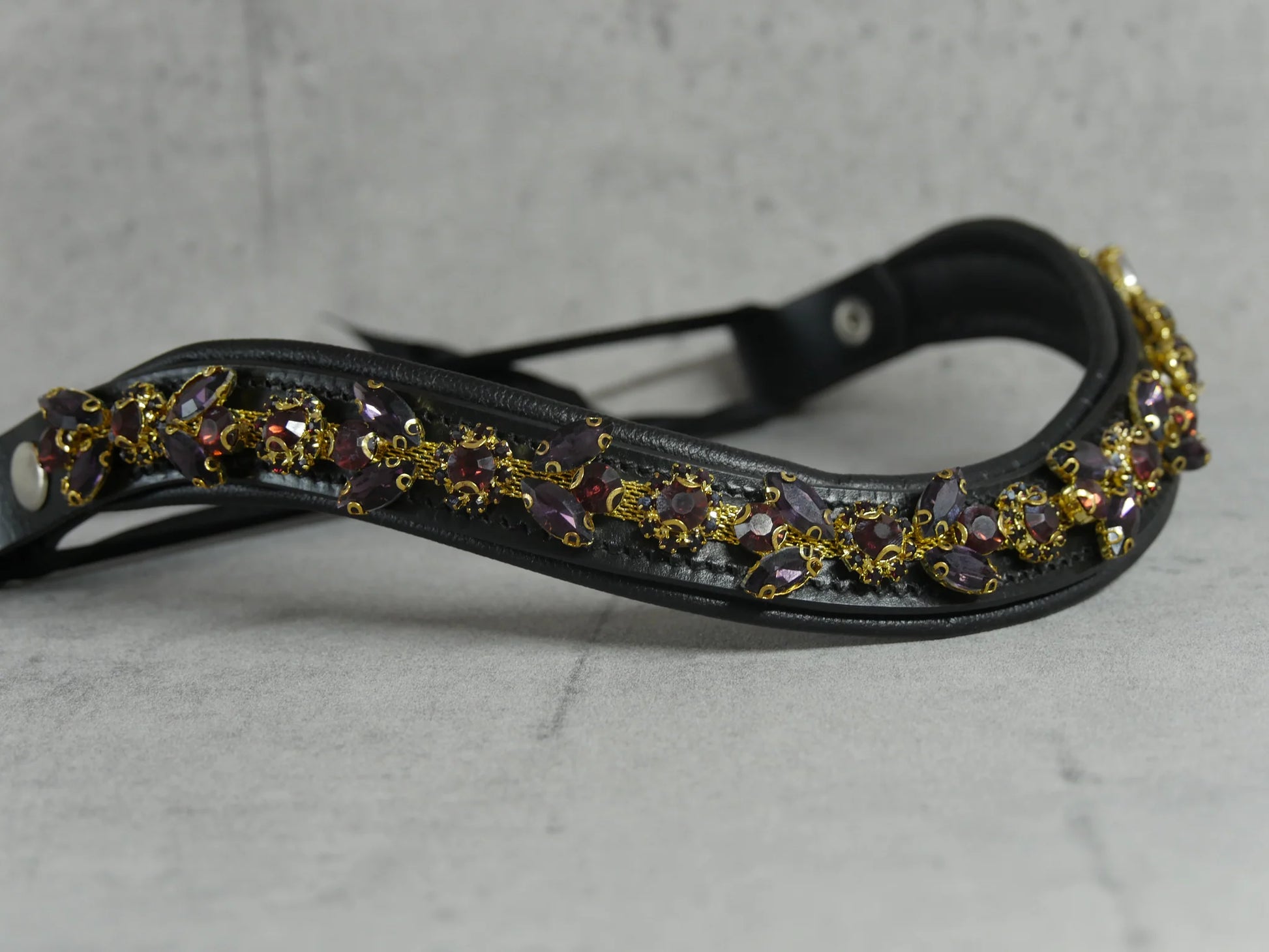 The supple and durable genuine leather is adorned with large clear Swarovski crystals.