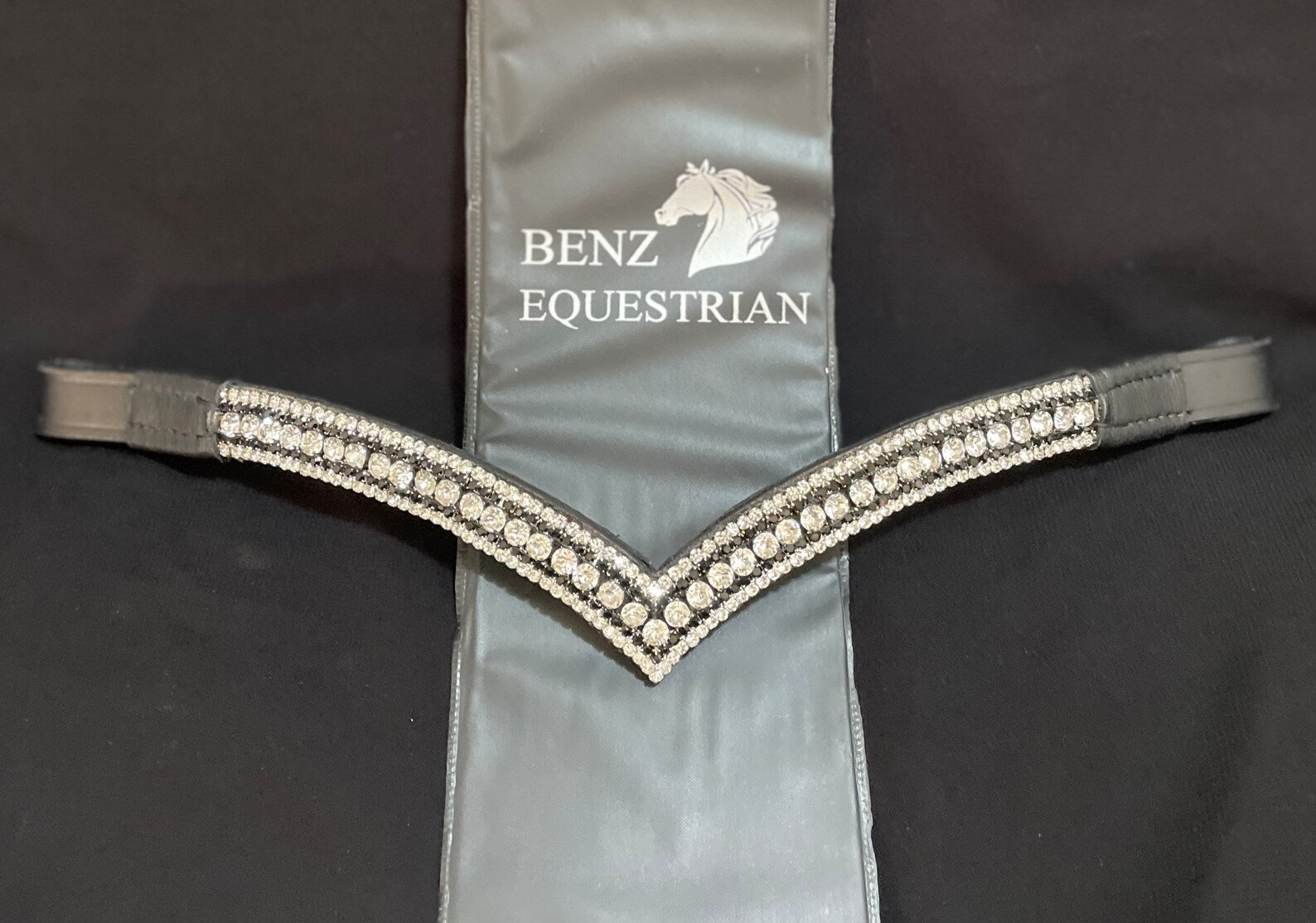 V-Shaped Brow Leather Black Crystal ICE Equestrian