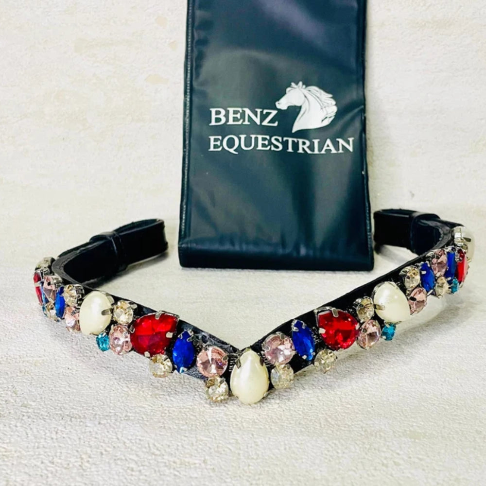 メガブリング額革 パール&マルチカラークリスタル Benz Equestrian
