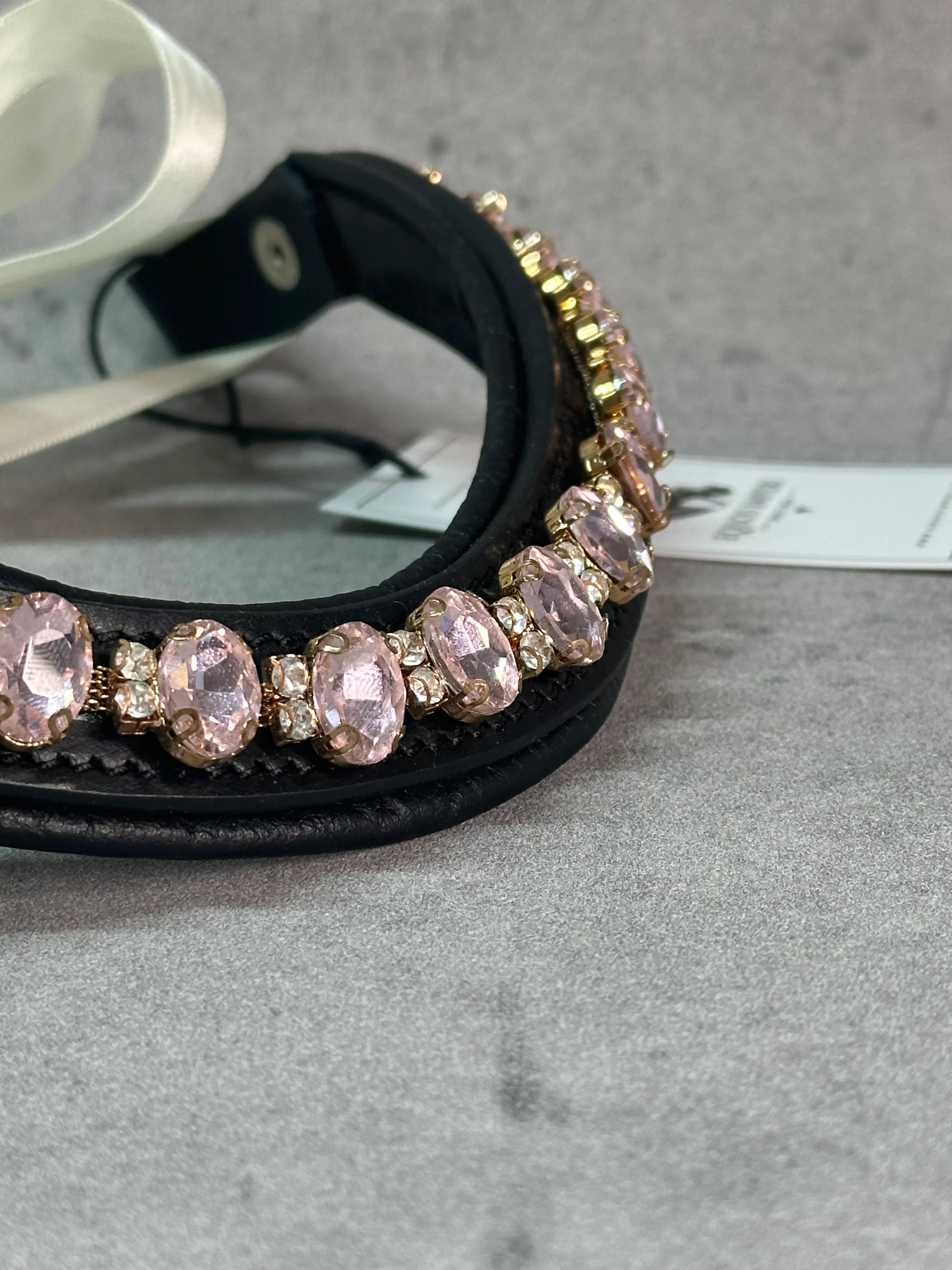 イタリアンレザー額革 ピーチクリスタル Masego スワロフスキー額革