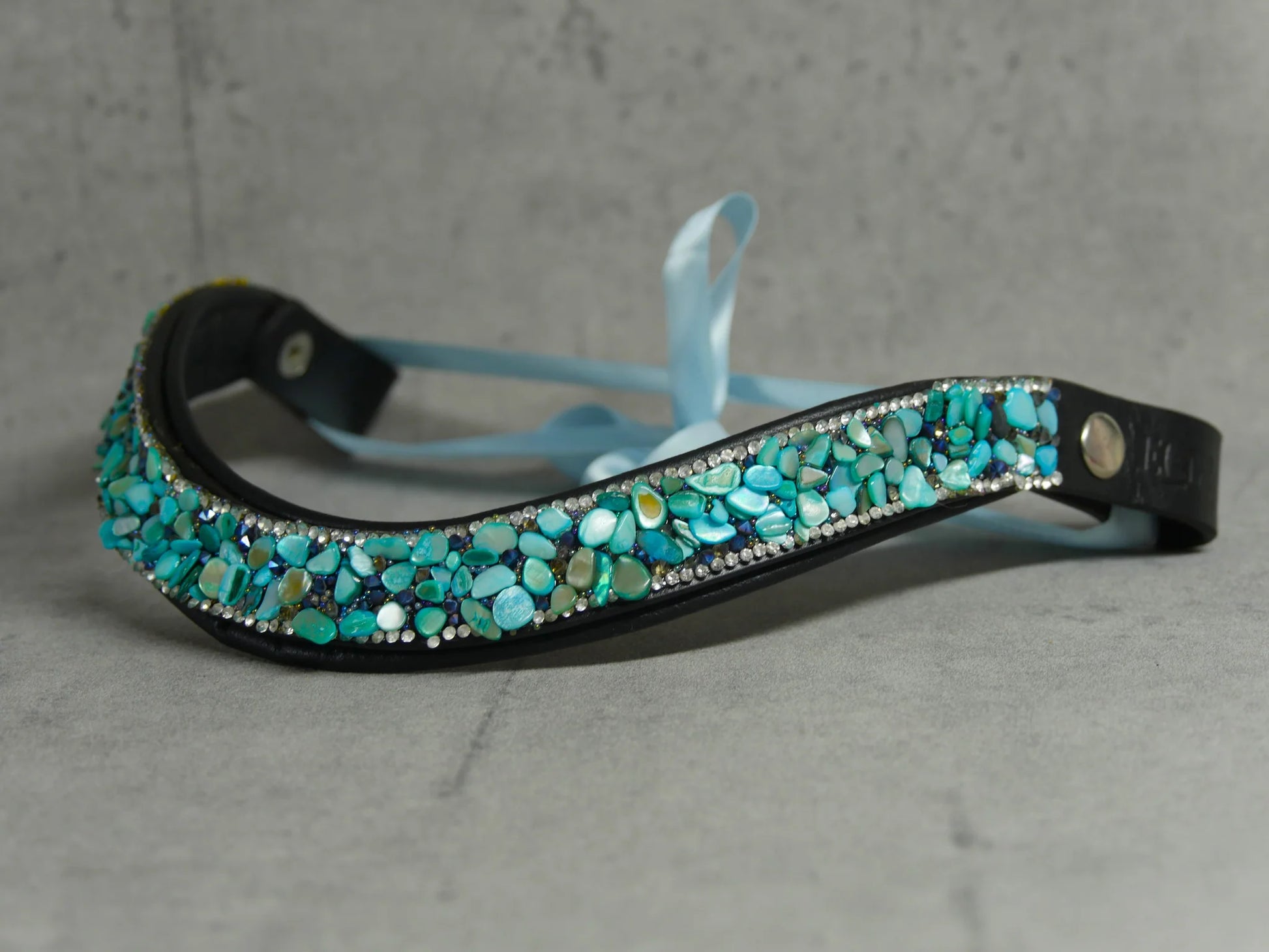 スワロフスキー額革 ブルーラグーン ブラック ポニーサイズのみ equosimperi