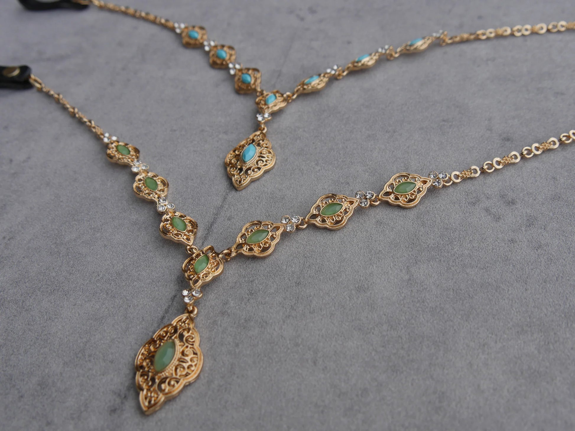 エメラルドドロップ額革 スワロフスキー 本革 Masego