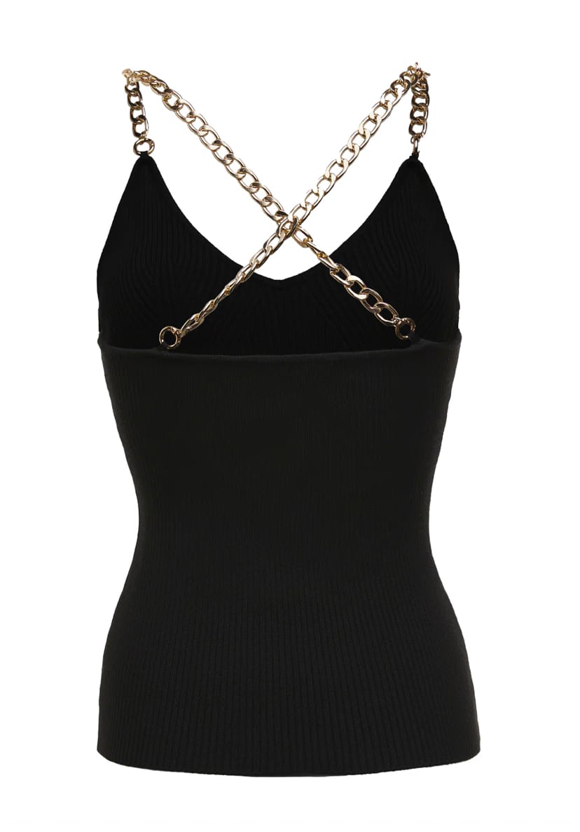 チェーンは背中でクロスするタイプで、後ろ姿も美しくみせることができます。