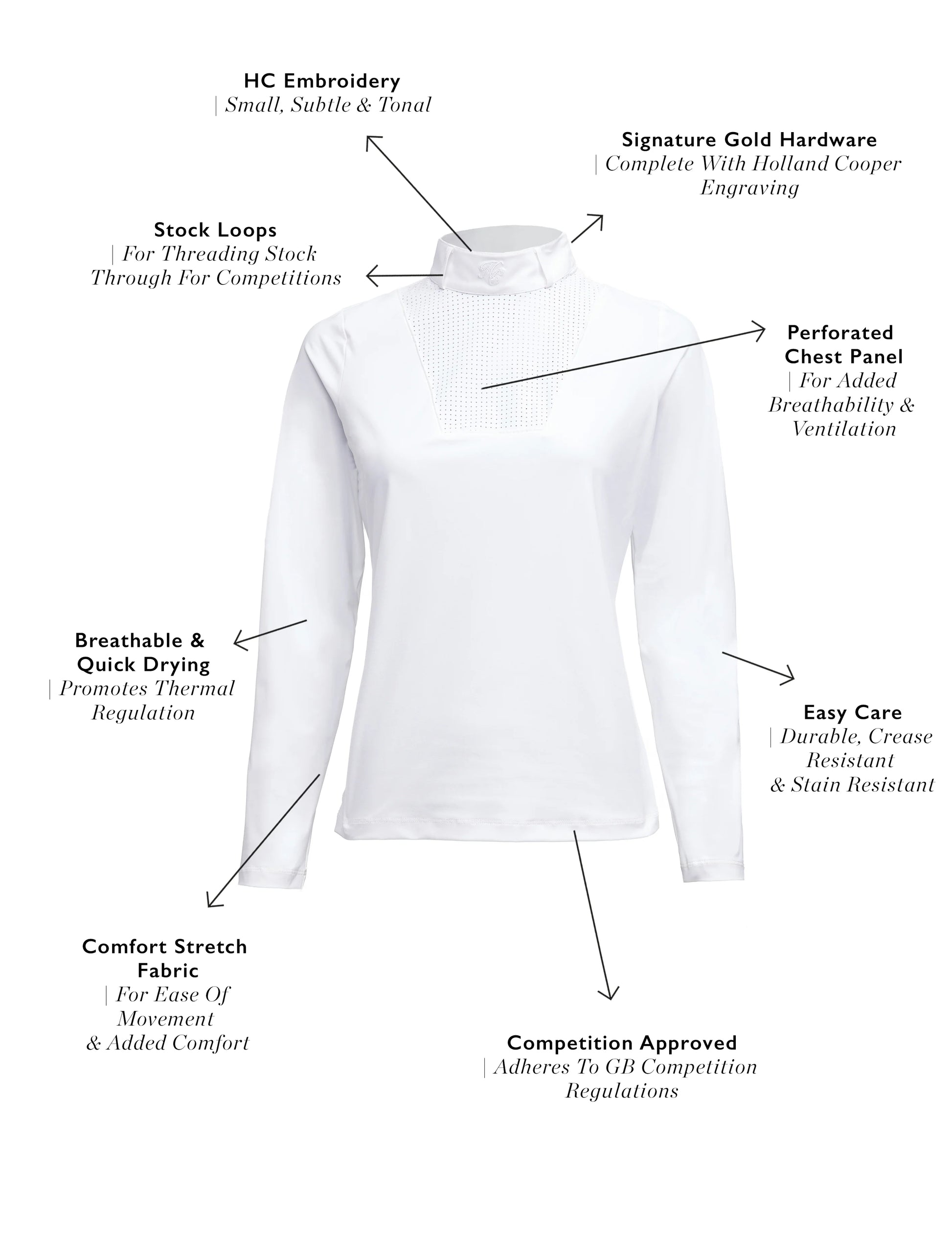 競技用シャツ パンチング加工 長袖 レディース Holland Cooper ホワイト