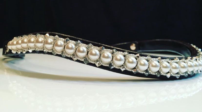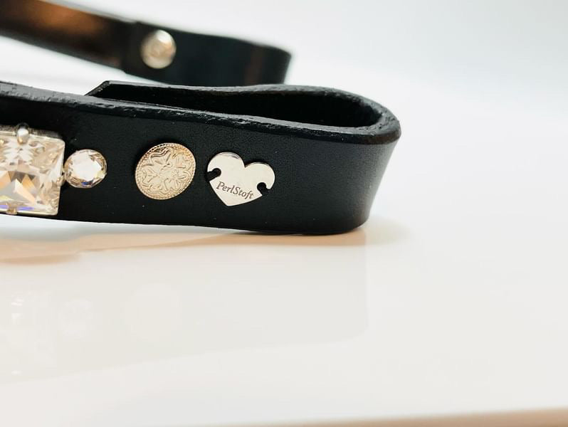 こちらは最高ランクのスワロフスキーを贅沢に使用したPerlStoft(パールストフト)の額革です。