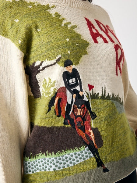 ハンドペイントのグラフィックをミックス技法で編み、刺繍を施した世界で100着しか生産されない限定品です。