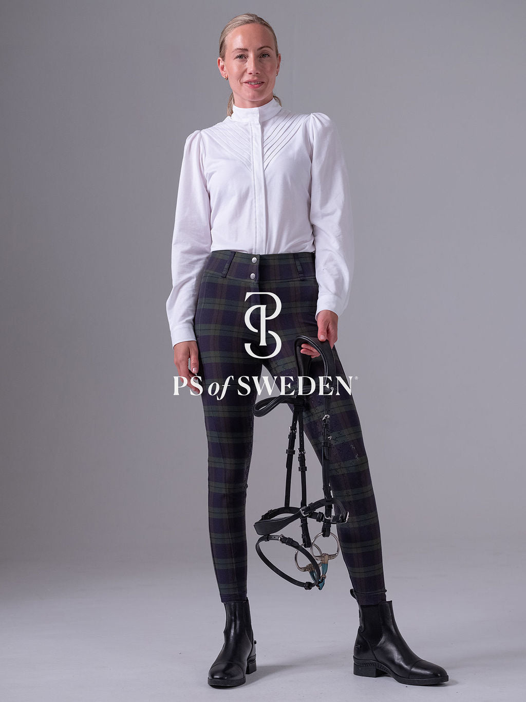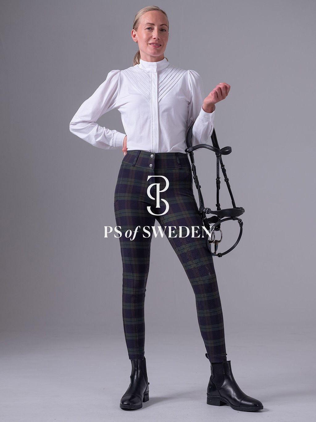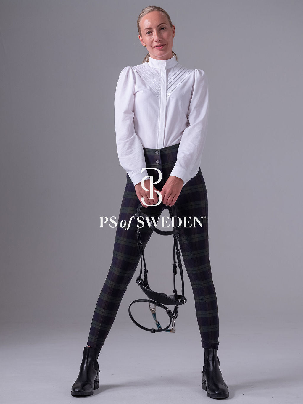 【限定】チェック柄ハイウエストキュロット フルグリップ ミッドナイトグリーン PS of Sweden