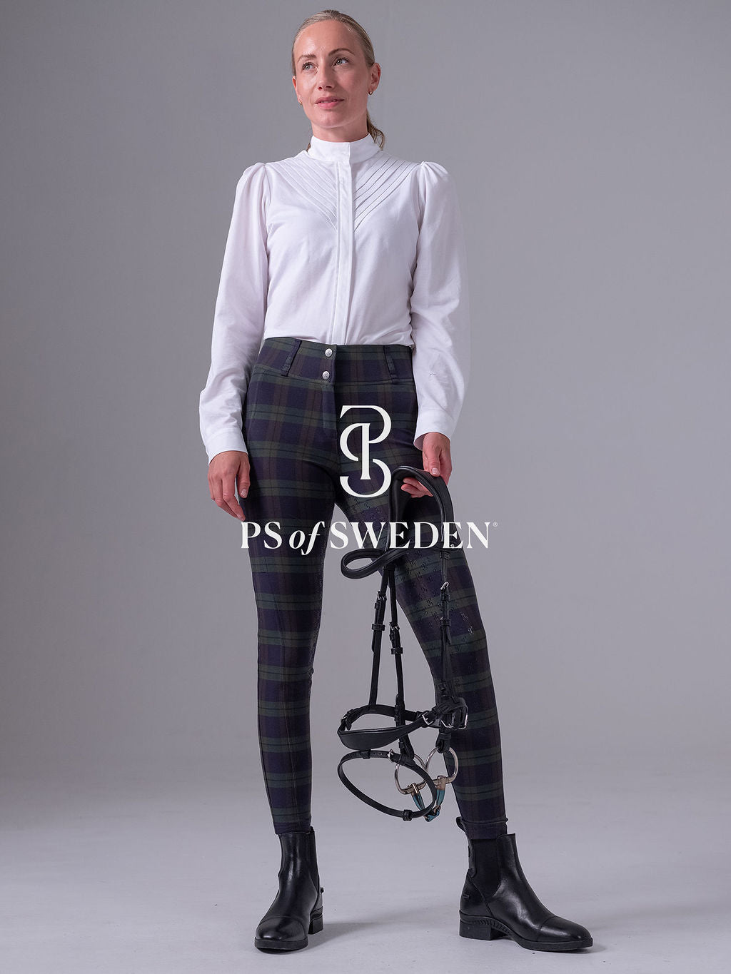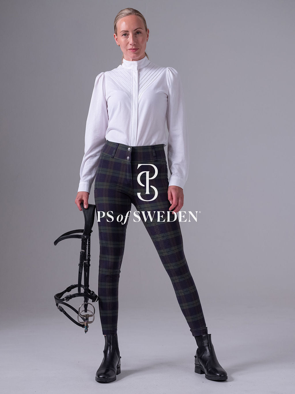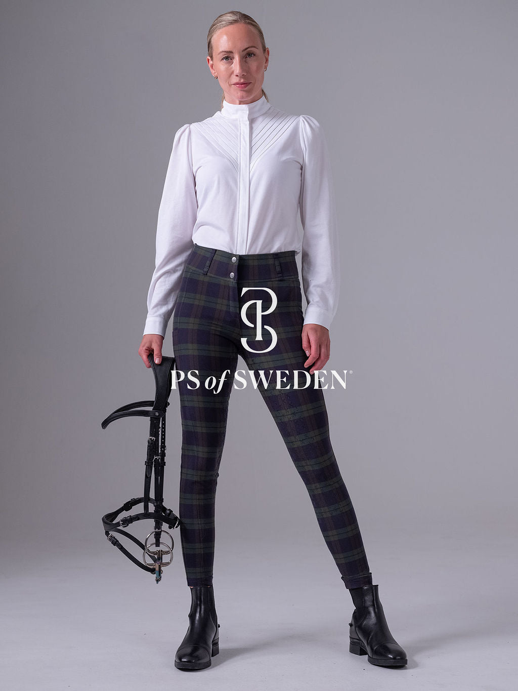 【限定】チェック柄ハイウエストキュロット フルグリップ ミッドナイトグリーン PS of Sweden