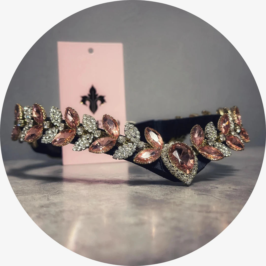 イタリアンレザー額革 ピーチクリスタル Masego スワロフスキー額革
